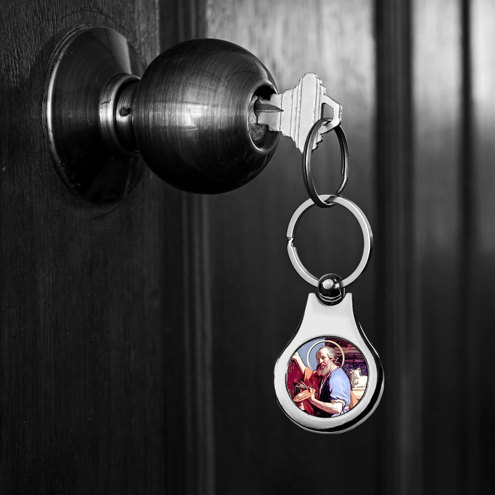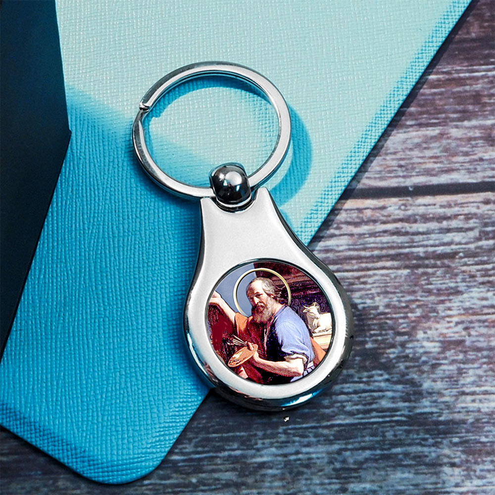 Stainless Steel Color Saint Luke Keychain