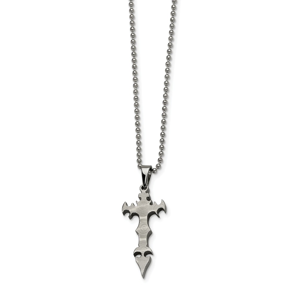 Stainless Steel Cross Dagger Pendant 22in Necklace
