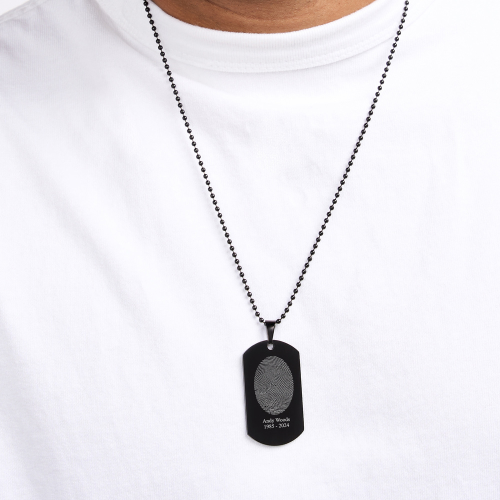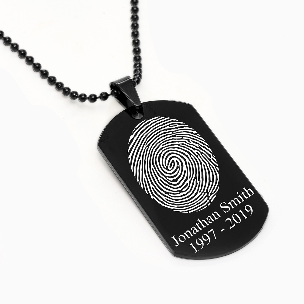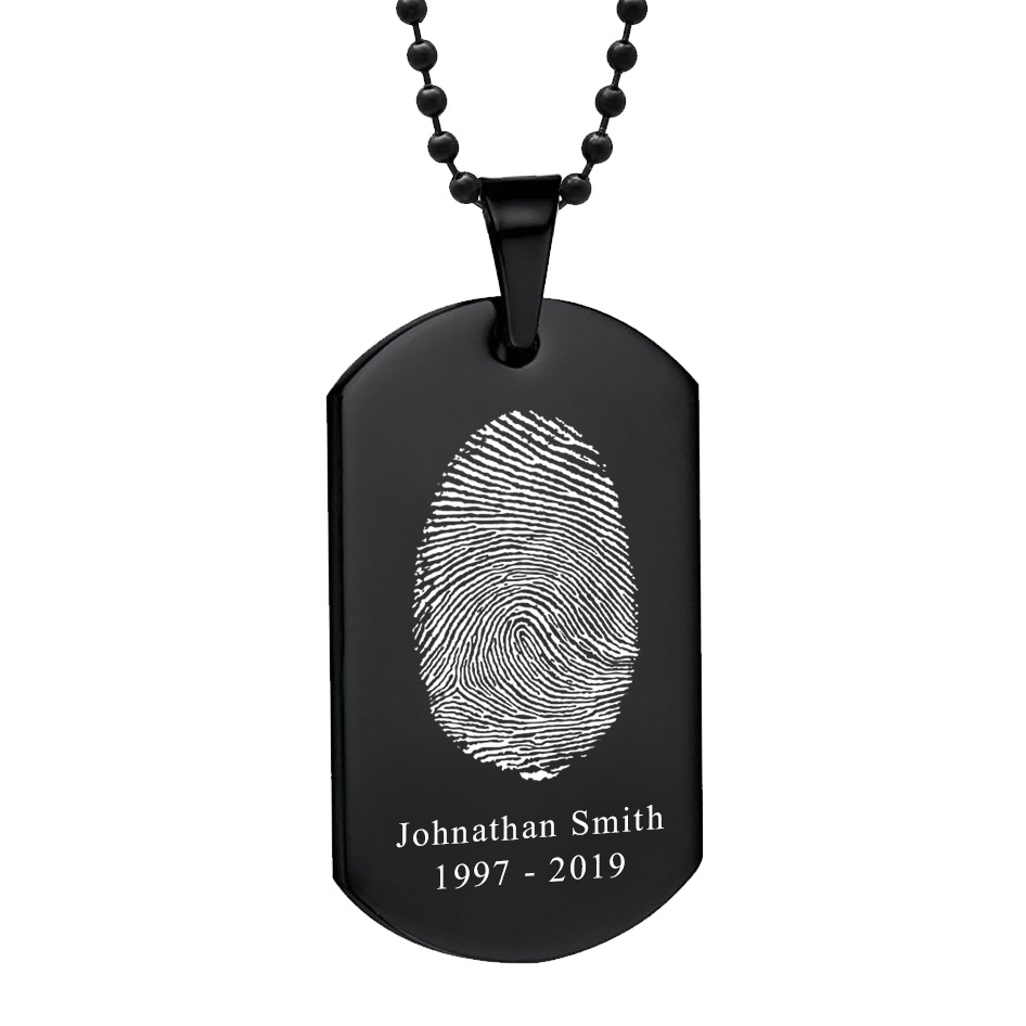 Black Stainless Steel Custom Fingerprint Dog Tag Pendant with Chain
