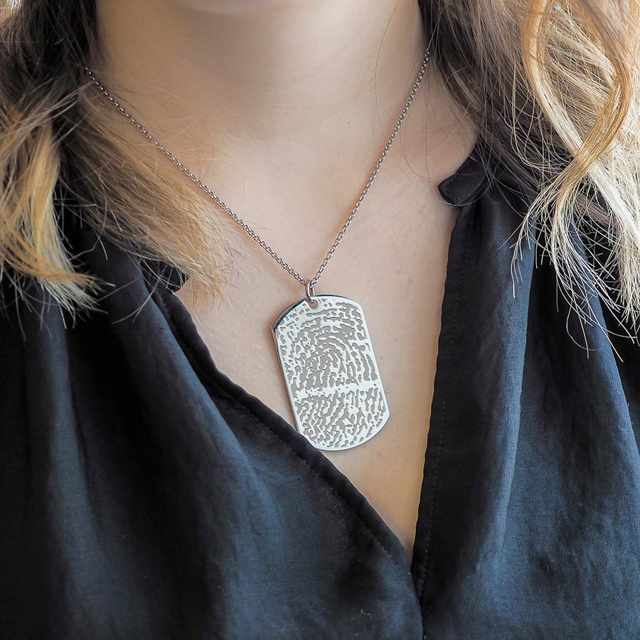 Stainless Steel Custom Fingerprint Dog Tag Pendant with Chain