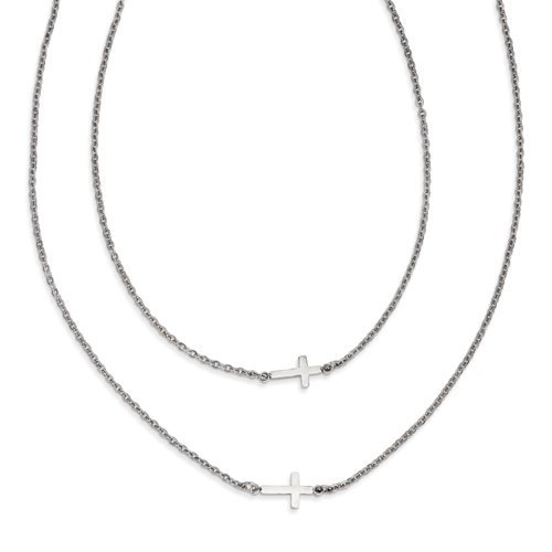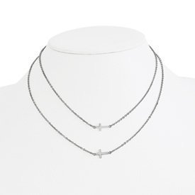 Stainless Steel Double Sideways Crosses Layered Necklace