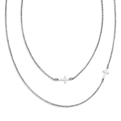 Stainless Steel Double Sideways Crosses Layered Necklace