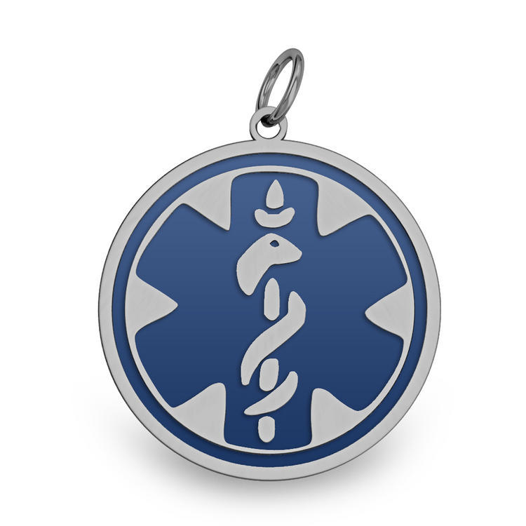 Stainless Steel Medical ID Charm or Pendant with Blue Enamel