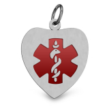 Stainless Steel Medical ID Heart Charm or Pendant with Red Enamel