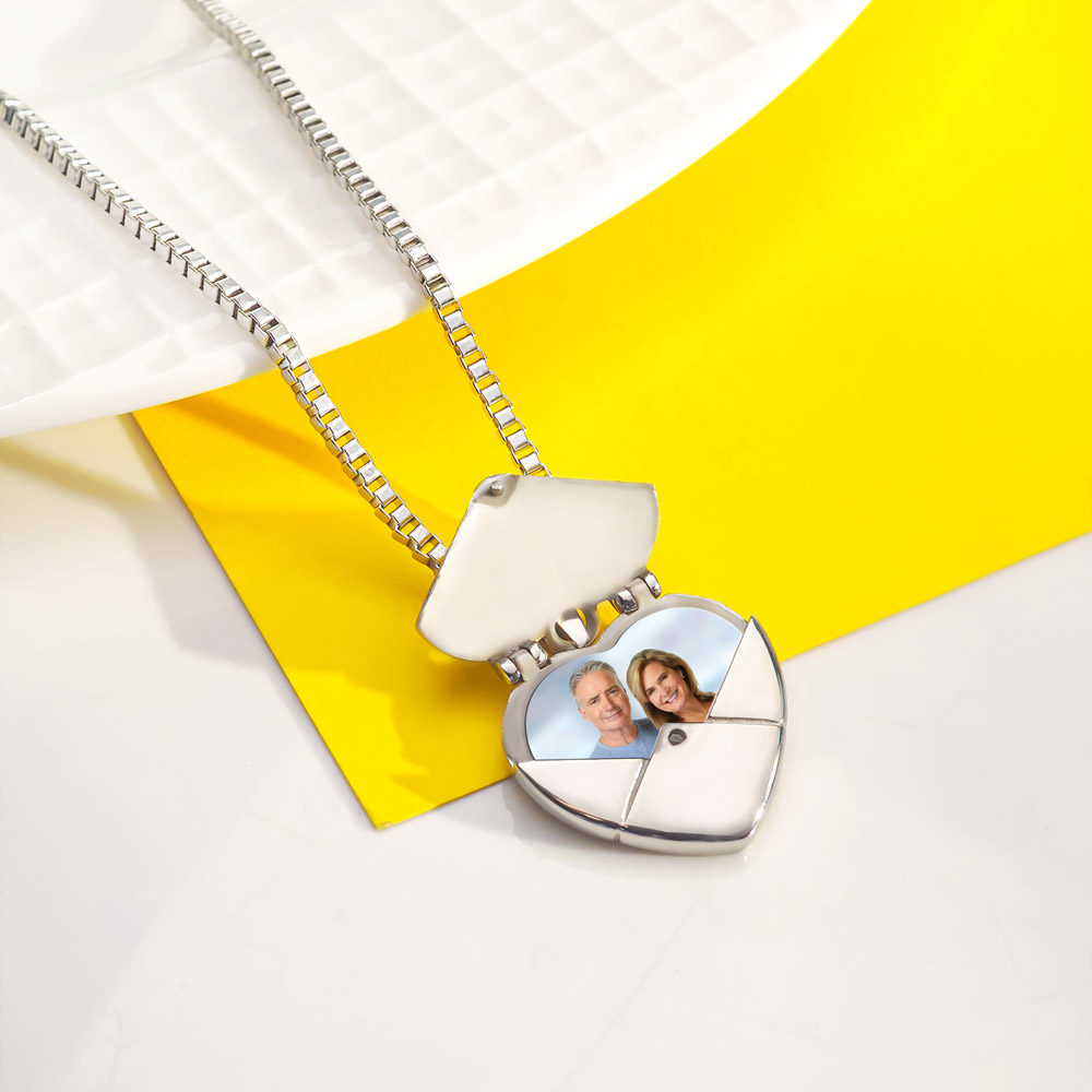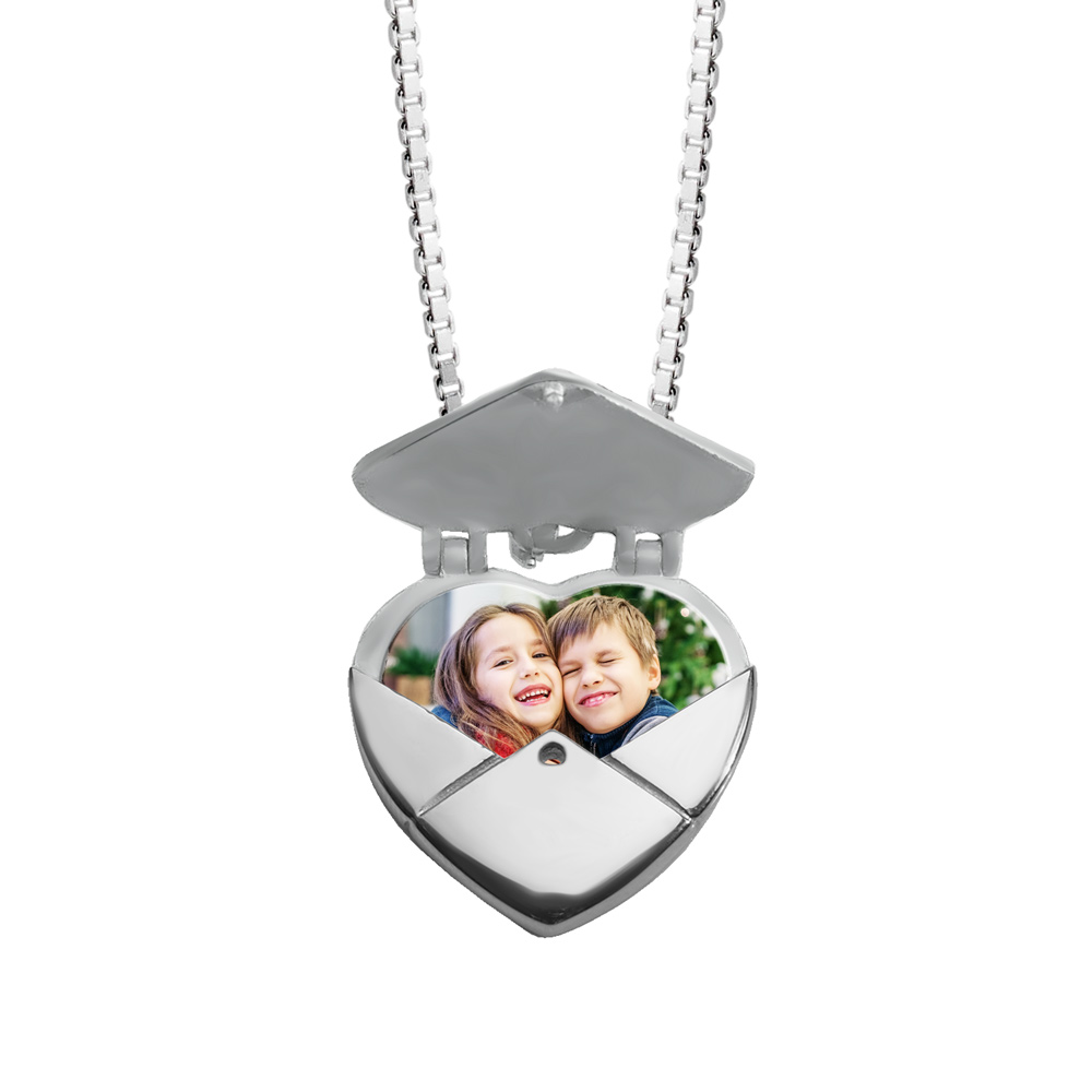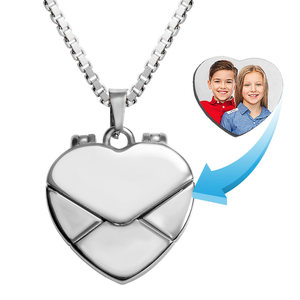 Engrave a personal message on the front or the back of actual Heart Shaped Envelope Photo Locket