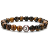 Stainless Steel Personalized Baseball Tigerseye Bead Bracelet