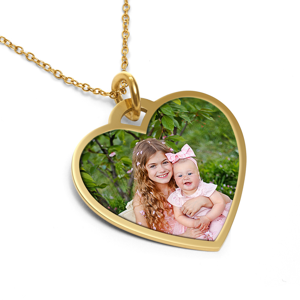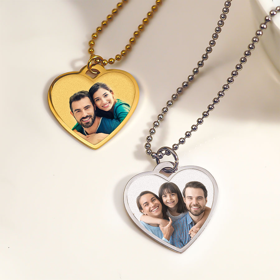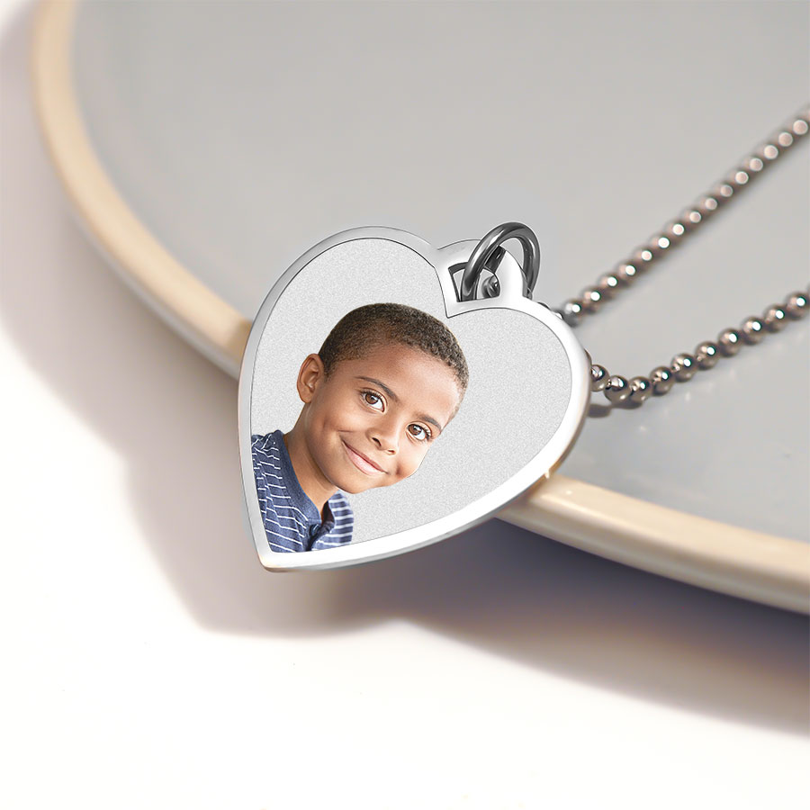 Stainless Steel Photo Engraved Heart Pendant with Chain