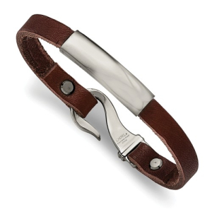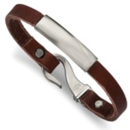 Custom Engraved Stainless Steel Men's Brown Leather ID Bracelet