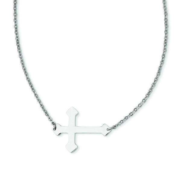 Stainless Steel Polished Sideways Cross 18in Necklace