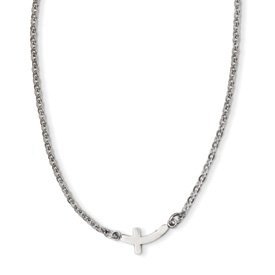 Stainless Steel Polished Sideways Cross 18in Necklace