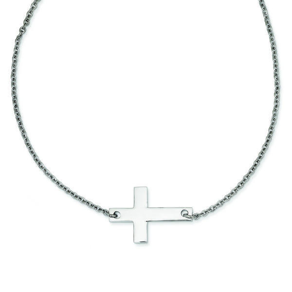 Stainless Steel Polished Sideways Cross Necklace