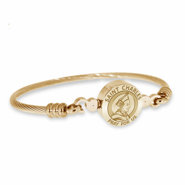 Stainless Steel Saint Charles Borromeo Bangle Bracelet