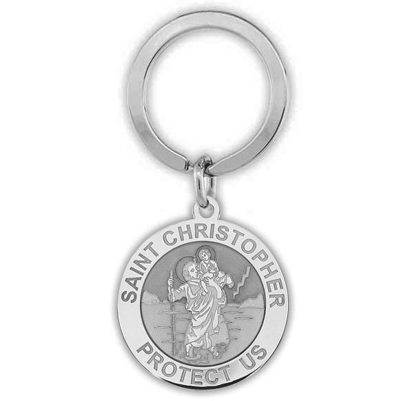Saint Christopher Keychain can be engraved with a personalized message on the reverse side * Available in Stainless Steel * Medal in two sizes: This Saint Christopher is the most popular saint worn by travelers.