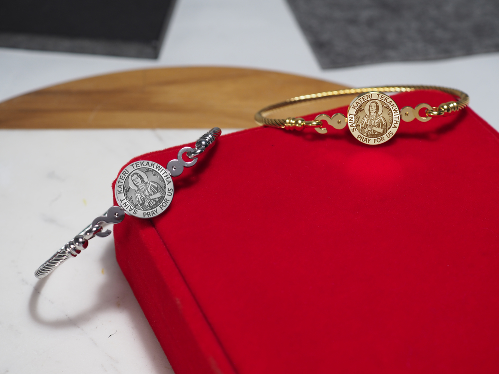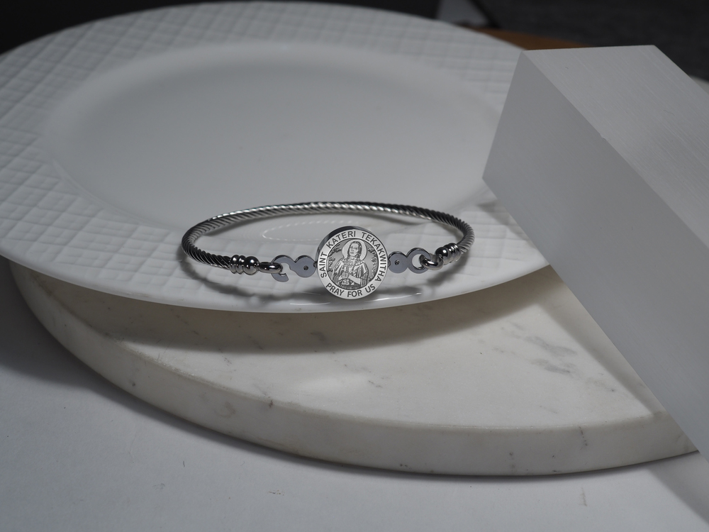 Stainless Steel Saint Kateri Tekakwitha Bangle Bracelet