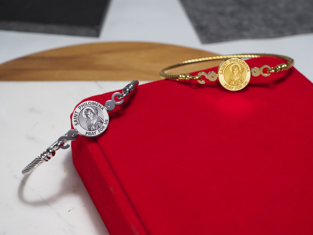 Stainless Steel Saint Philomena Bangle Bracelet