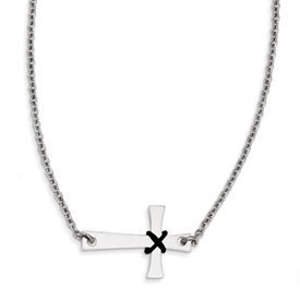Stainless Steel Sideways Cross with Rubber Accent Necklace