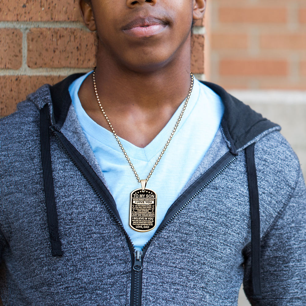 Introducing the perfect gift for your son - the Stainless Steel "To My Son" Dog Tag Necklace. Made with high-quality