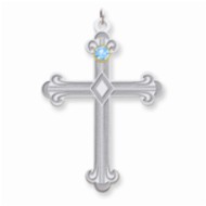 Sterling Silver/14k Bezel Crystal Family Cross Pendant