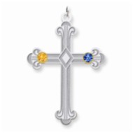 Sterling Silver/14k Bezel Crystal Family Cross Pendant