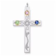 Sterling Silver/14k Bezel Crystal Family Cross Pendant