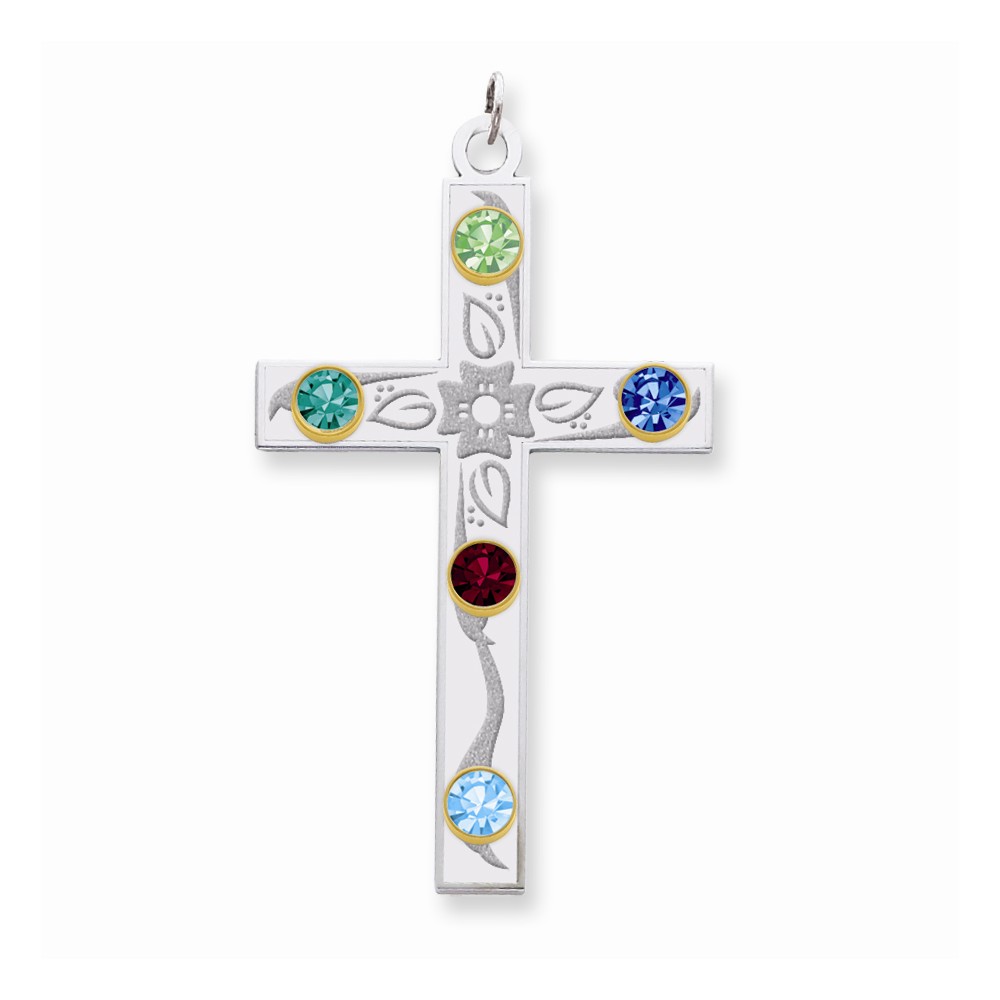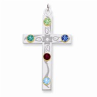 Sterling Silver/14k Bezel Crystal Family Cross Pendant