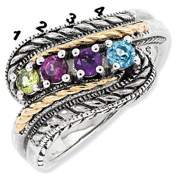 Sterling Silver & 14k Three-stone Antiqued Mother's Ring