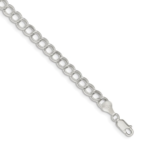 Sterling Silver 6mm Double Link Charm Bracelet w/ Lobster Claw