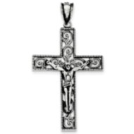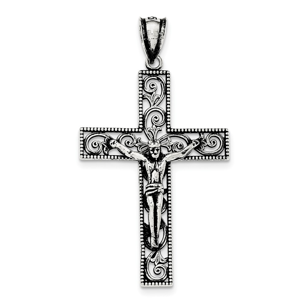 Sterling Silver Antiqued Beaded Filigree INRI Crucifix Pendant
