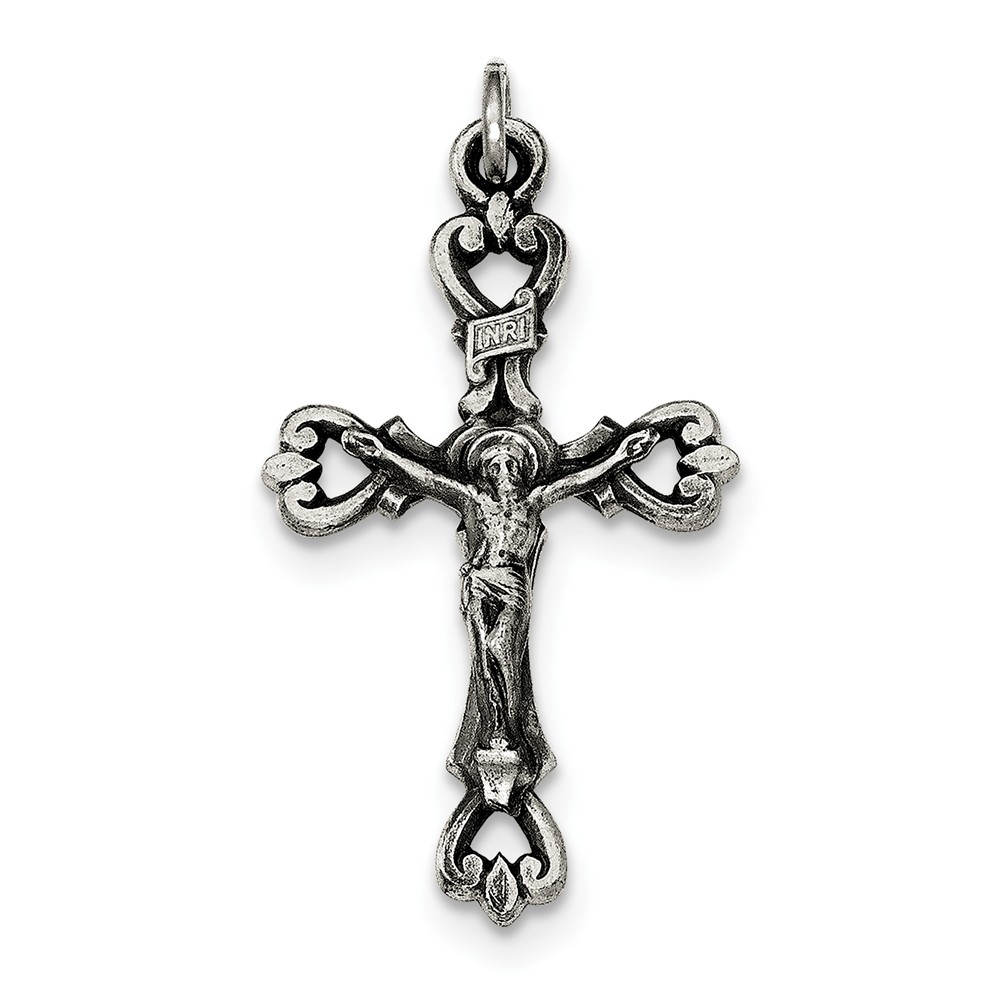 Sterling Silver Antiqued and Brushed INRI Crucifix Pendant