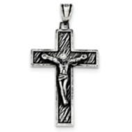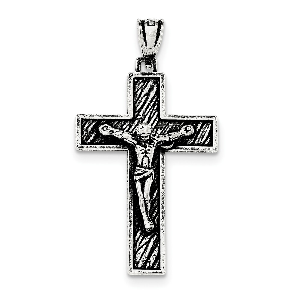 Sterling Silver Antiqued Large Box Cross Crucifix Pendant