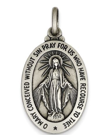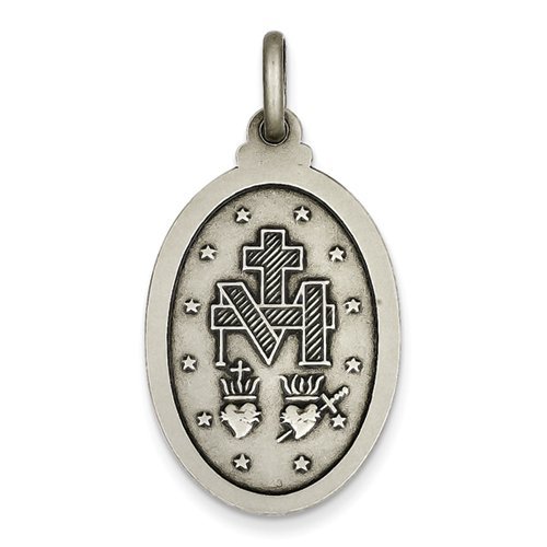 Sterling Silver Antiqued Miraculous Medal Pendant Charm