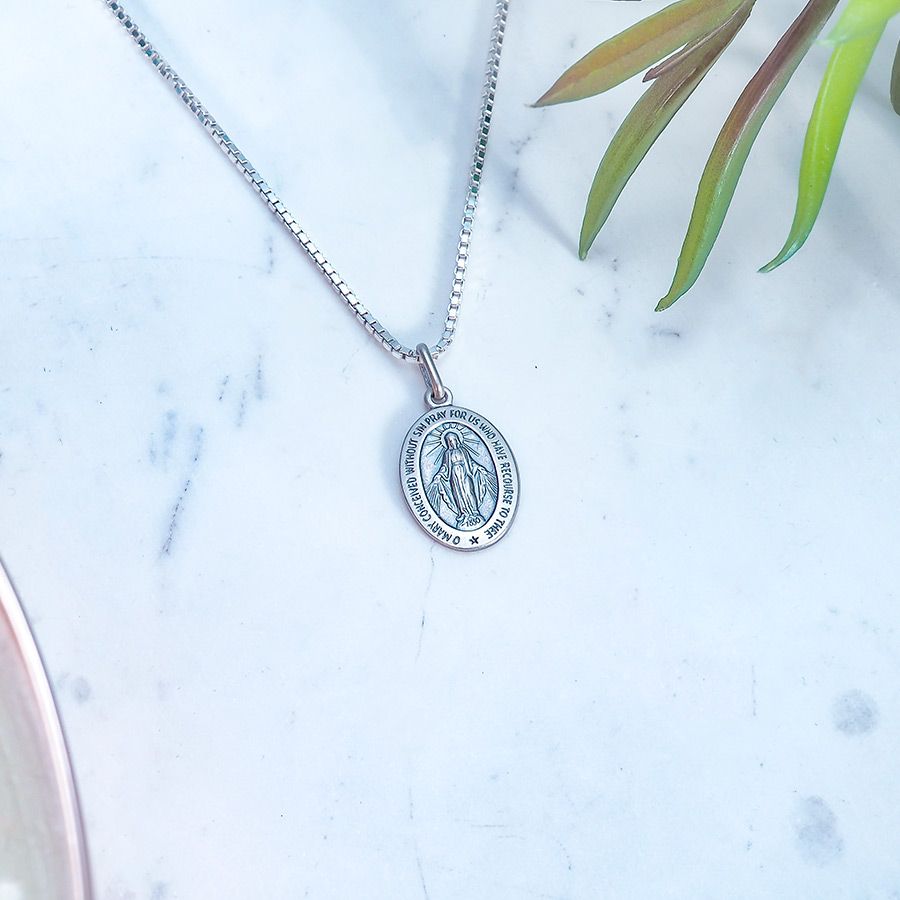 "I've purchased two Miraculous Medals from you at different times. Both times I've been highly satisfied. They came when expected and there were no hidden costs. Actually look so much better than pictures on site. No photo does jewelry any justice. The recent one I got was in sterling silver. I bought it for a friend for Mothers Day as she keeps admiring the one I always wear. Won't she be surprised. Thank you for your meticulous work in creating this fine jewelry."