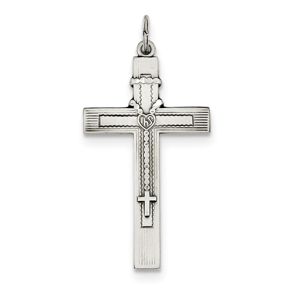 Sterling Silver Antiqued Rosary Cross Pendant