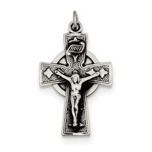 Sterling Silver Antiqued Satin Irish Crucifix Cross Pendant