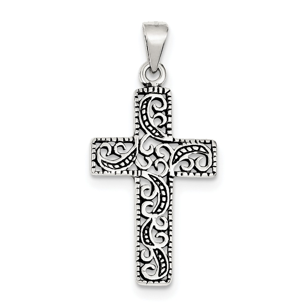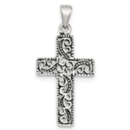 Sterling Silver Antiqued Scroll Cross Pendant