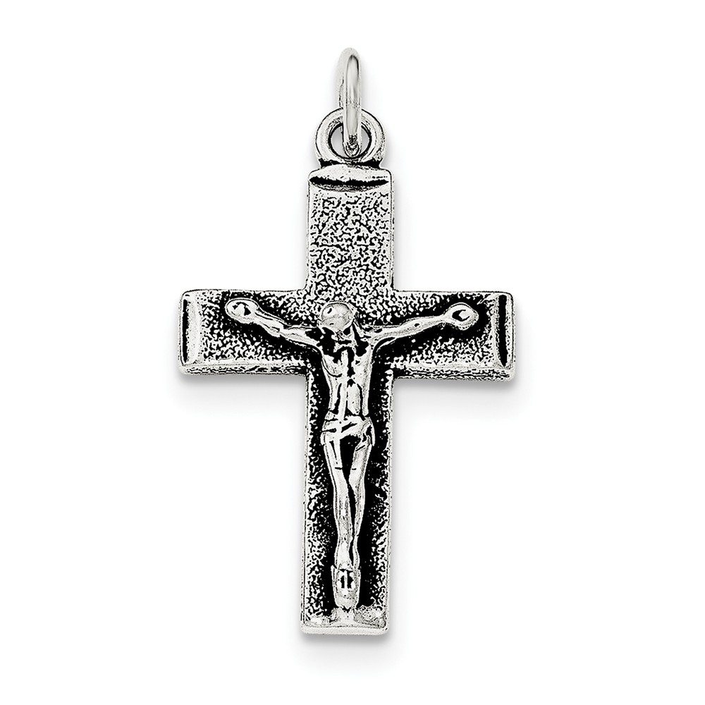Sterling Silver Antiqued Squared Cross Crucifix Pendant