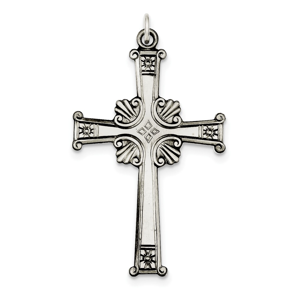 Sterling Silver Antiqued, Textured and Brushed Cross Pendant