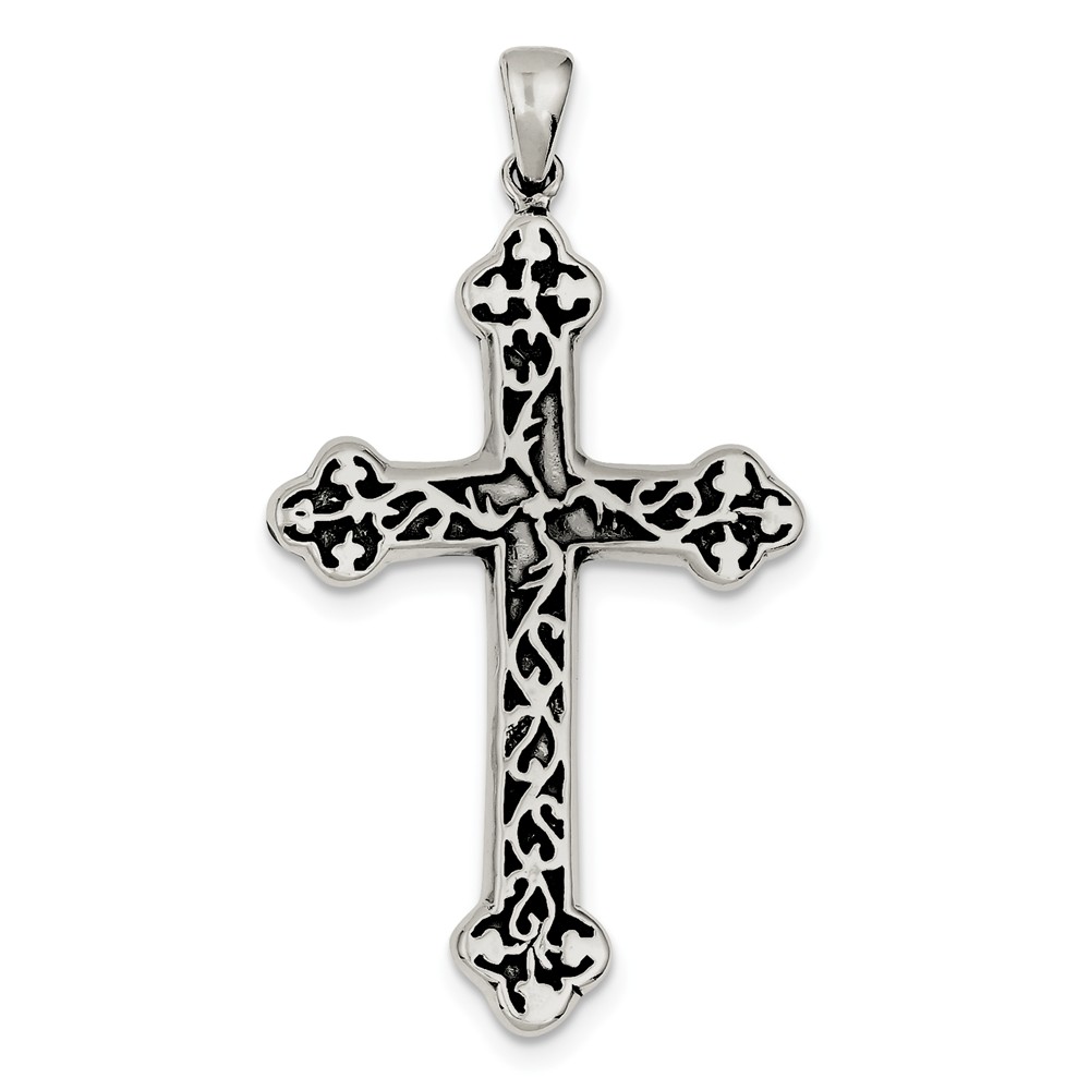 Sterling Silver Antiqued Thorn Cross Pendant