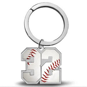 Sterling Silver Baseball Number & Stainless Steel Key Ring with 1 or 2 Digits