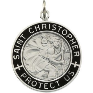 STERLING SILVER BLACK ENAMEL ST. CHRISTOPHER MEDAL
