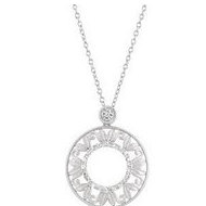 This Diamond Pendant comes with full round cut genuine diamonds totaling 1/6 carats. Pendant is in Sterling Silver. This item is approximately 1" x 3/4". The weight is approximately 3.27 grams.