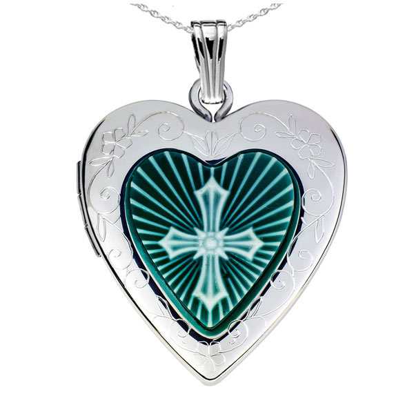 Green Cross Cameo Heart Photo Locket