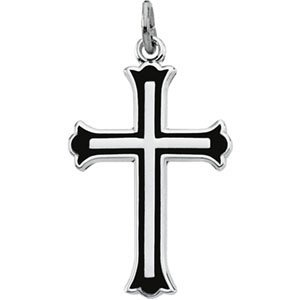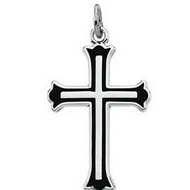 Sterling Silver CROSS W/BLACK ENAMEL
