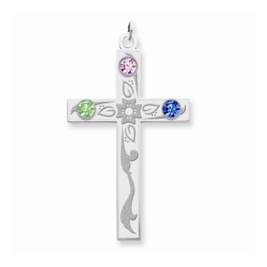 Sterling Silver Crystal Family Cross Pendant