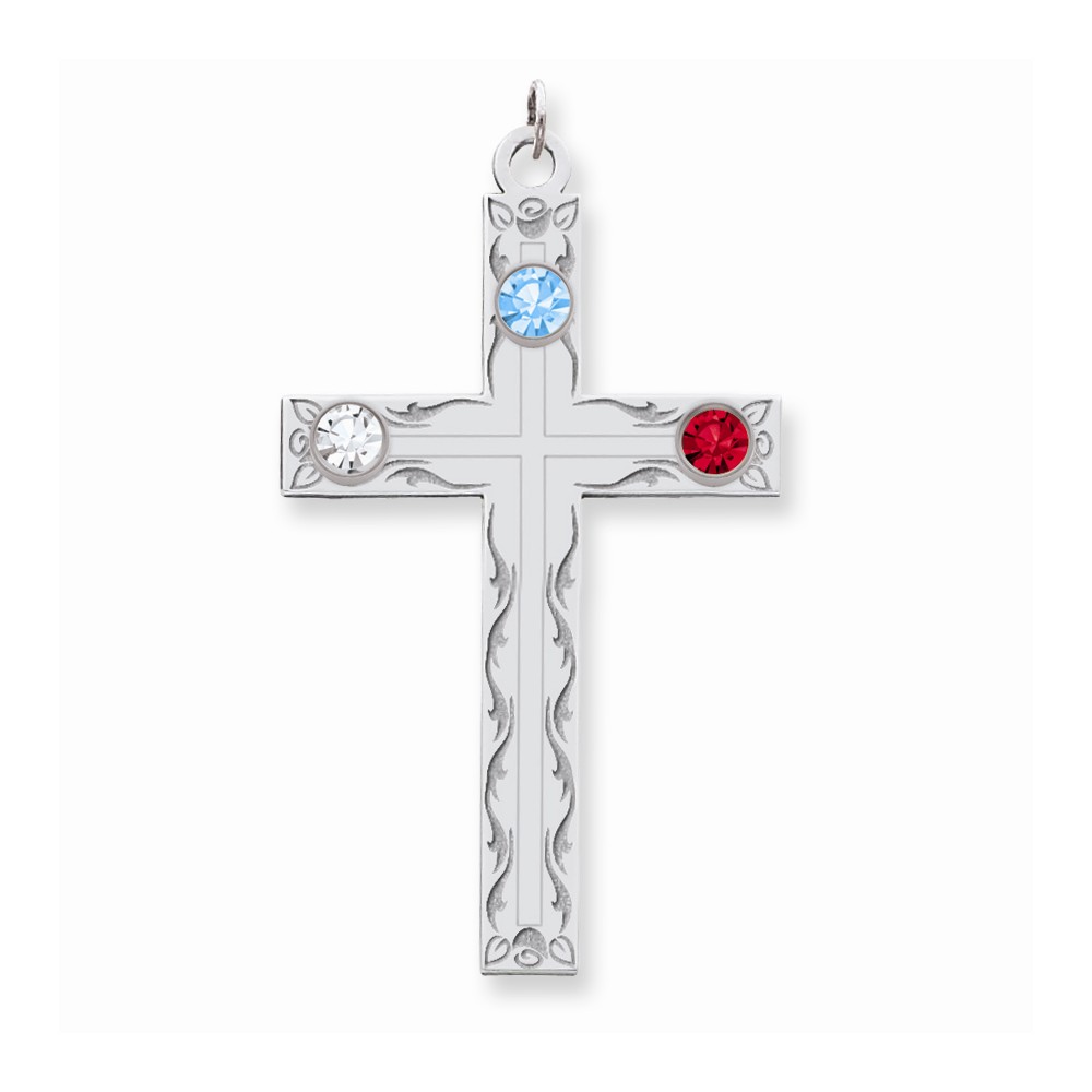 Sterling Silver Crystal Family Cross Pendant