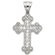 Sterling Silver CZ Budded Cross Pendant