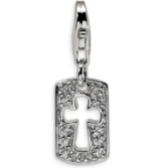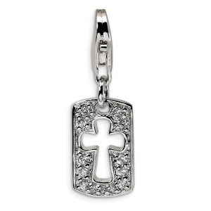 Sterling Silver CZ Cut-out Cross/Faith Clip-on w/Lobster Clasp Charm