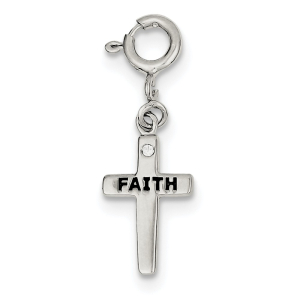 Sterling Silver CZ Faith Cross Clip-on Charm
