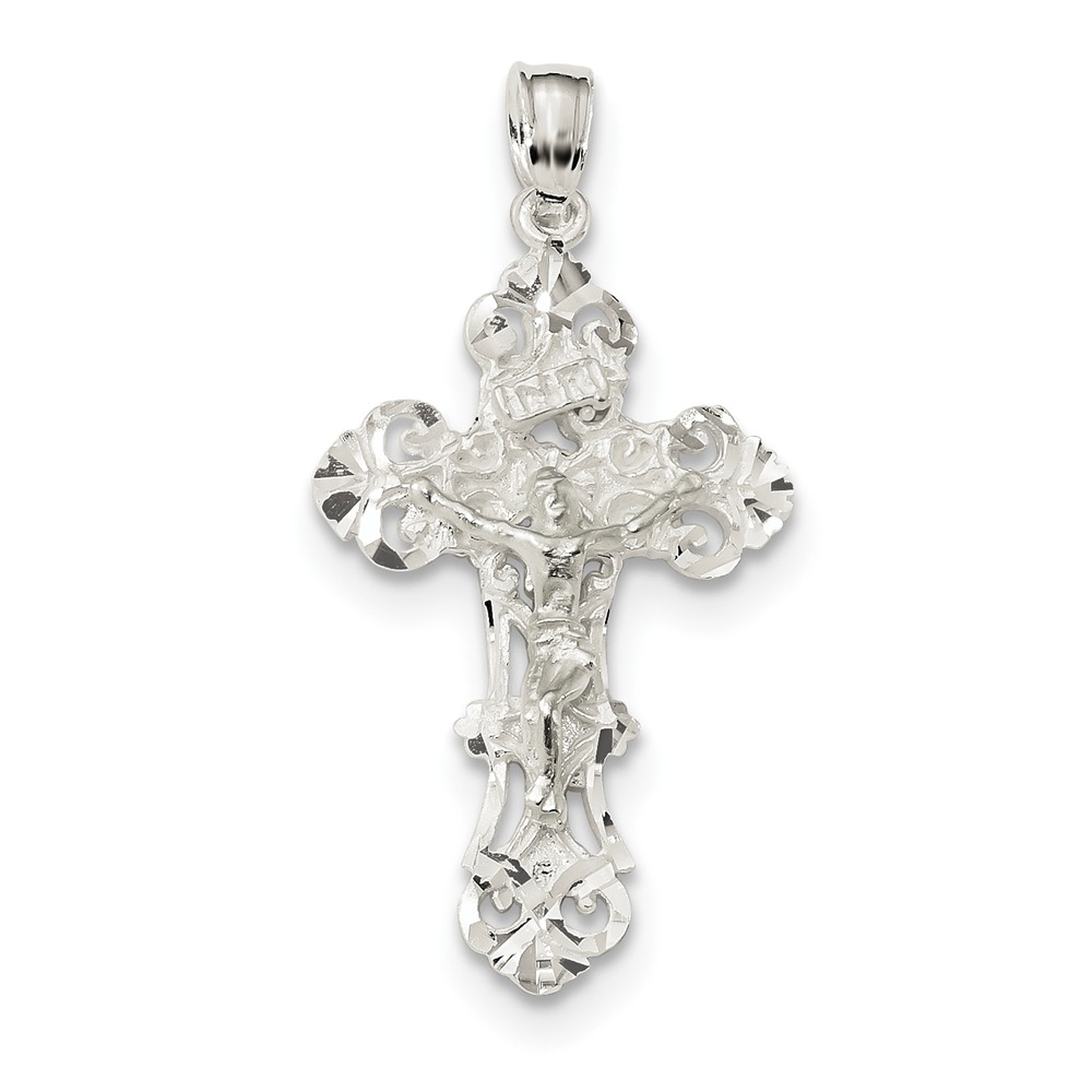 Sterling Silver Diamond Cut INRI Crucifix Pendant