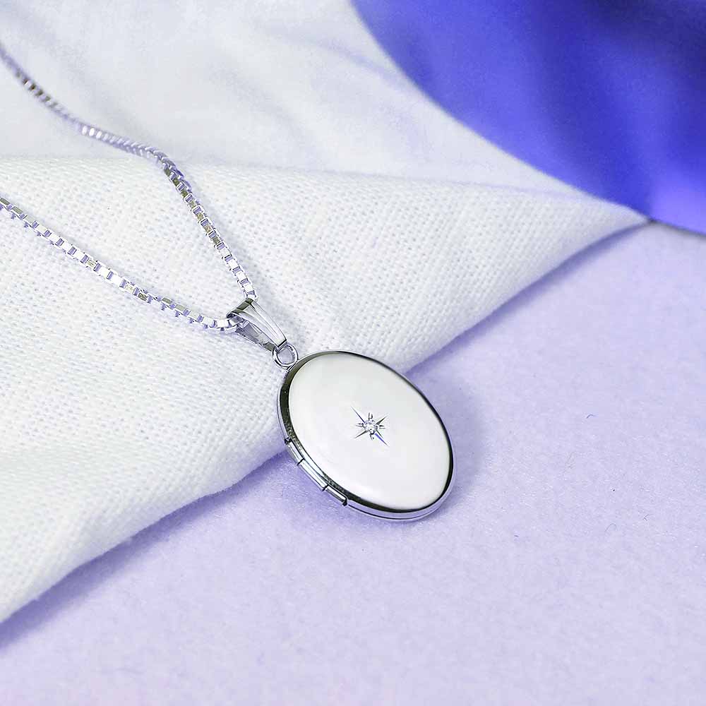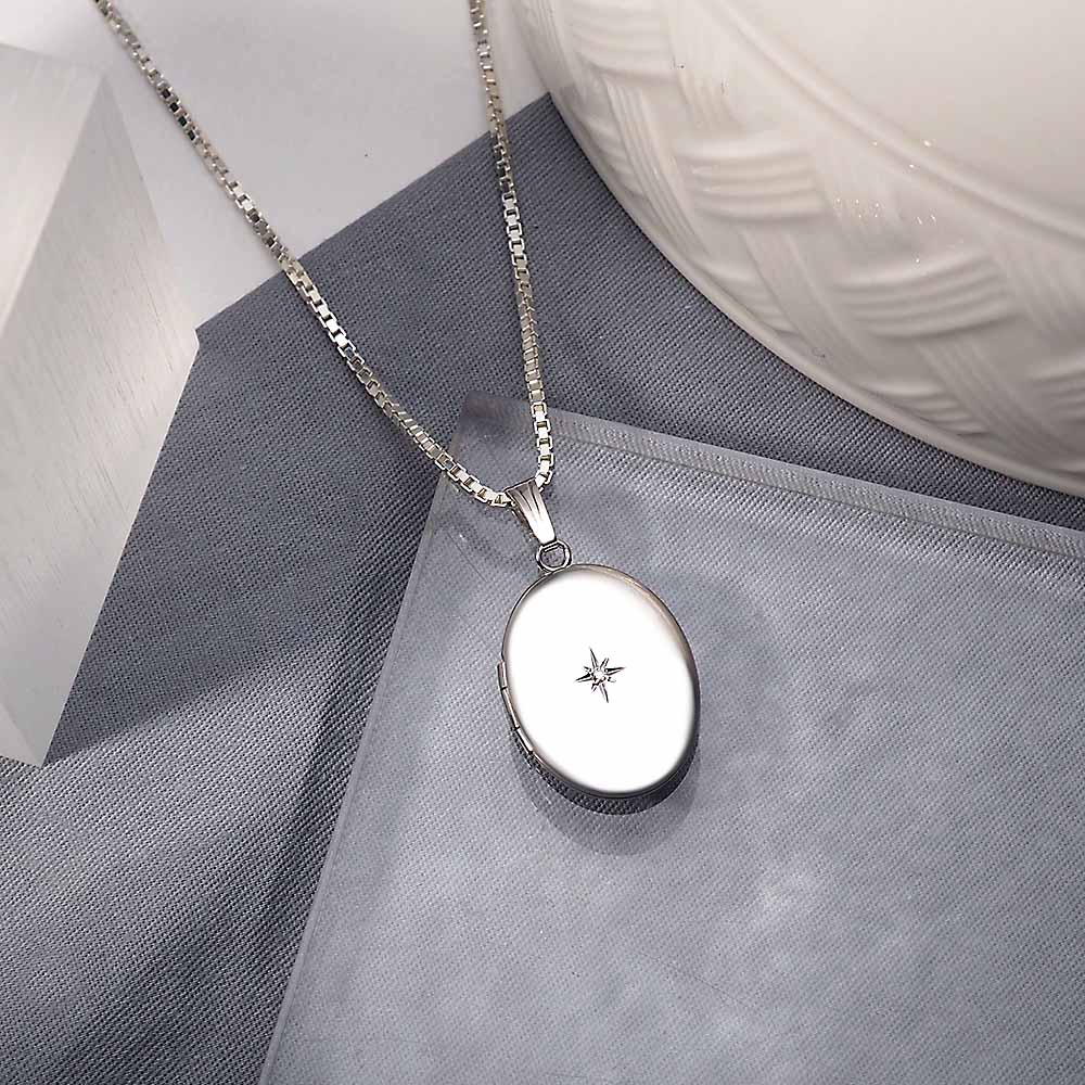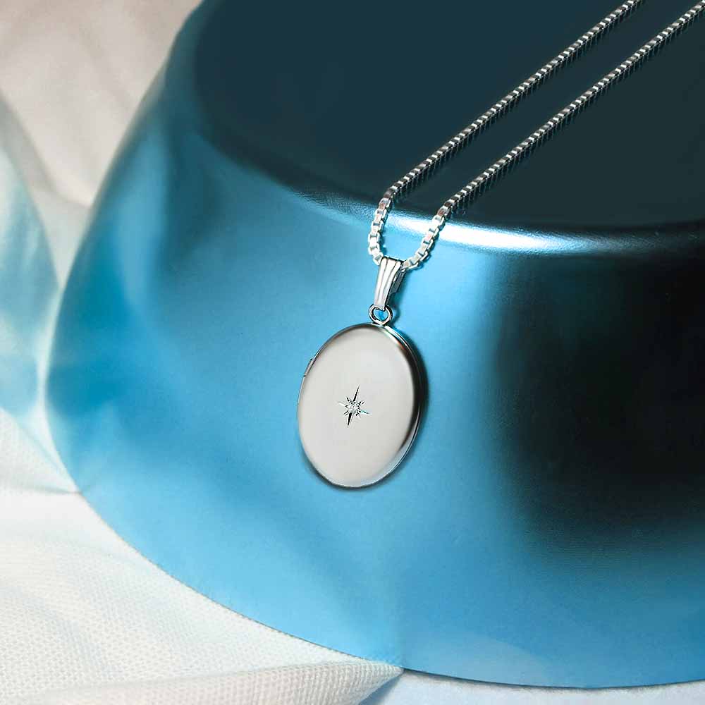 Diamond Oval Photo Locket